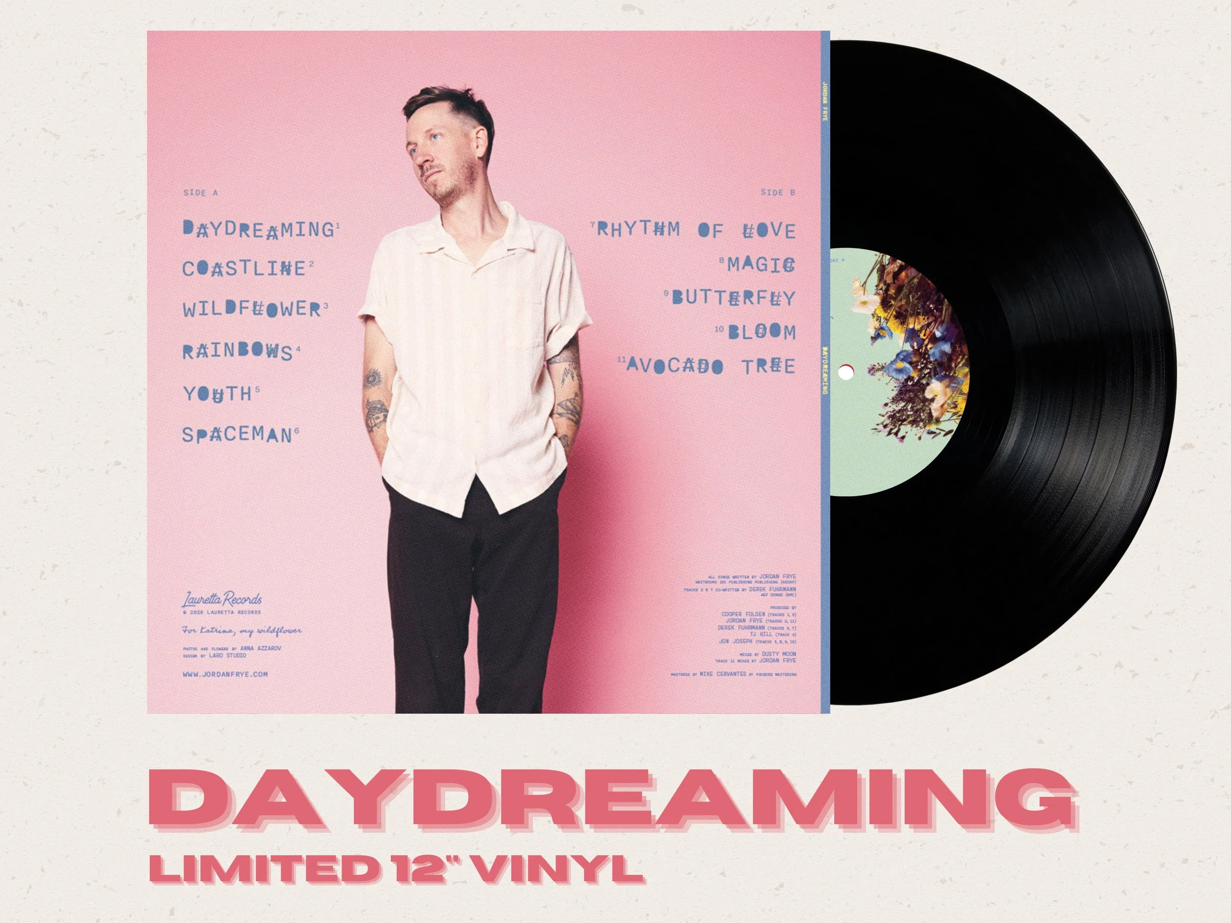 After making waves on the Top 40 Hot AC Radio Charts in 2025 with nostalgic “wildflower” and shimmering sensation “magic” arrives the groundbreaking full-length 11 track album, "daydreaming". Southern California surfer/skater and established Pop songwriter Jordan Frye leaves listeners suspended in air with dopamine-infused hooks, Bowie-sized ballads, and breathtaking lyricism. “i’ve always been a daydreamer. sometimes my dreams are so tangible that’s it’s difficult to separate the memories from the imaginary, the past from possibility. the most vivid daydreams have a way of pushing up through the soil, and blooming into song. i find myself writing, ruminating, and even romanticizing the story of my own life into the music, not unlike watering a garden. some of these songs have taken years grow, while others emerged within minutes, yet all are ultimately seeds of love."